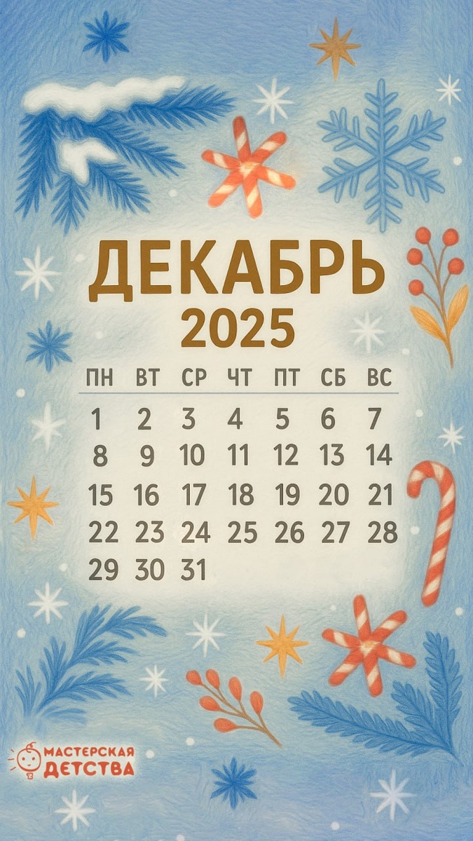 🎄 Декабрь - месяц, когда всё ускоряется: утренники, планы, подарки, подготовка к праздникам. И так важно иметь под рукой что-то простое, тёплое и удобное, чтобы одним взглядом видеть, на какой день выпадает нужное дело. Мы сделали для вас нежный морозный календарь-обои, чтобы первый месяц зимы стал ещё немного уютнее. Скачивайте, сохраняйте и пользуйтесь с удовольствием ❄️💛 #МастерскаяДетства