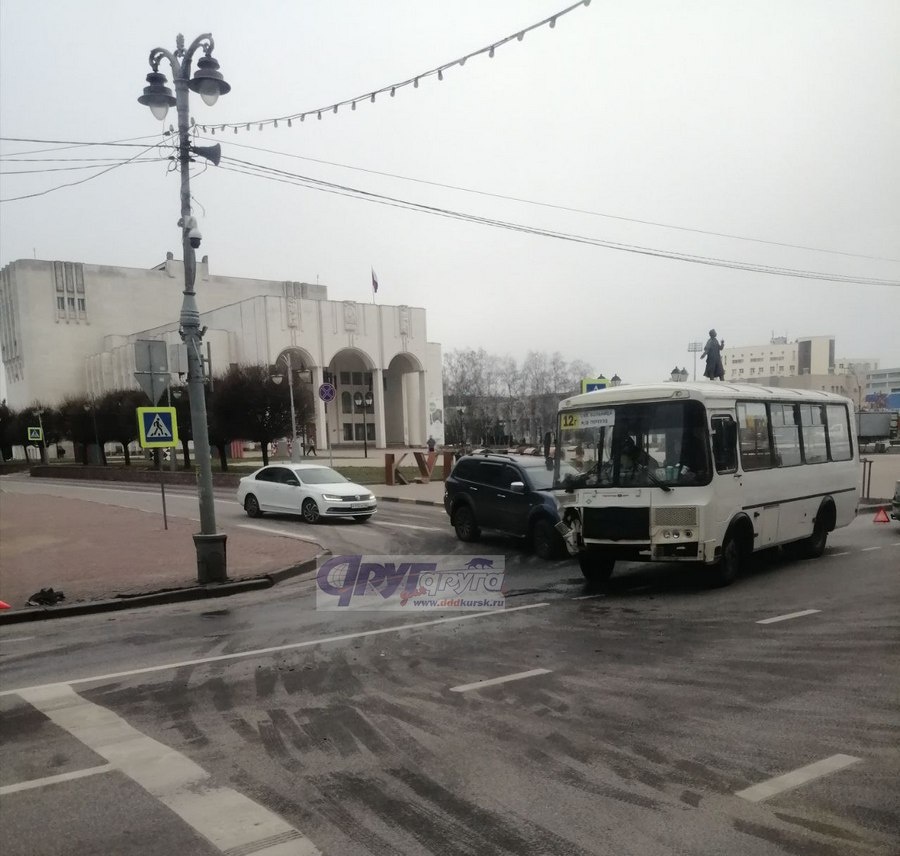В центре Курска попал в аварию автобус, еще один ПАЗ - на Союзной