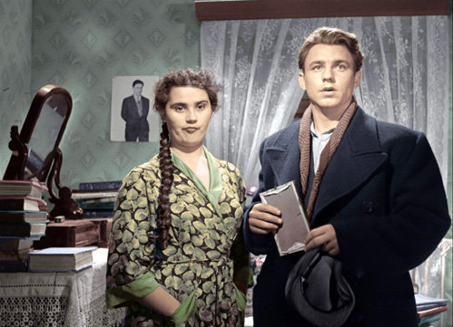 Отголоски Серебряного века в классической советской мелодраме Образ Александра Блока был изящно и остроумно "вписан" Марленом Хуциевым и Феликсом Миронером в повседневность молодых строителей коммунизма в фильме "Весна на Заречной улице" (1956). Фотография поэта аж дважды показана крупным планом, а ещё прочитано начало стихотворения "Мы встречались с тобой на закате..." Сначала главному герою показывают фото Блока: "Ухажер столичный. Вишь, под Тарзана подстриженный, она с такими прыгать привыкла". Герой Рыбникова воспринимает образ Блока как конкурента в борьбе за сердце молодой учительницы. Позже он видит то же фото в книге, которую читает его сестра и его озаряет: "- Саш, а, Саш! Что такое "утончённость мечты"? - Утонченность мечты...ну, это...А где ты это взяла? - В библиотеке. Поэт Александр Блок. - Поэт... Лауреат? - Не знаю. - Биография есть? - Наверное. - Родился в 1880-м году. Так это старый!.."