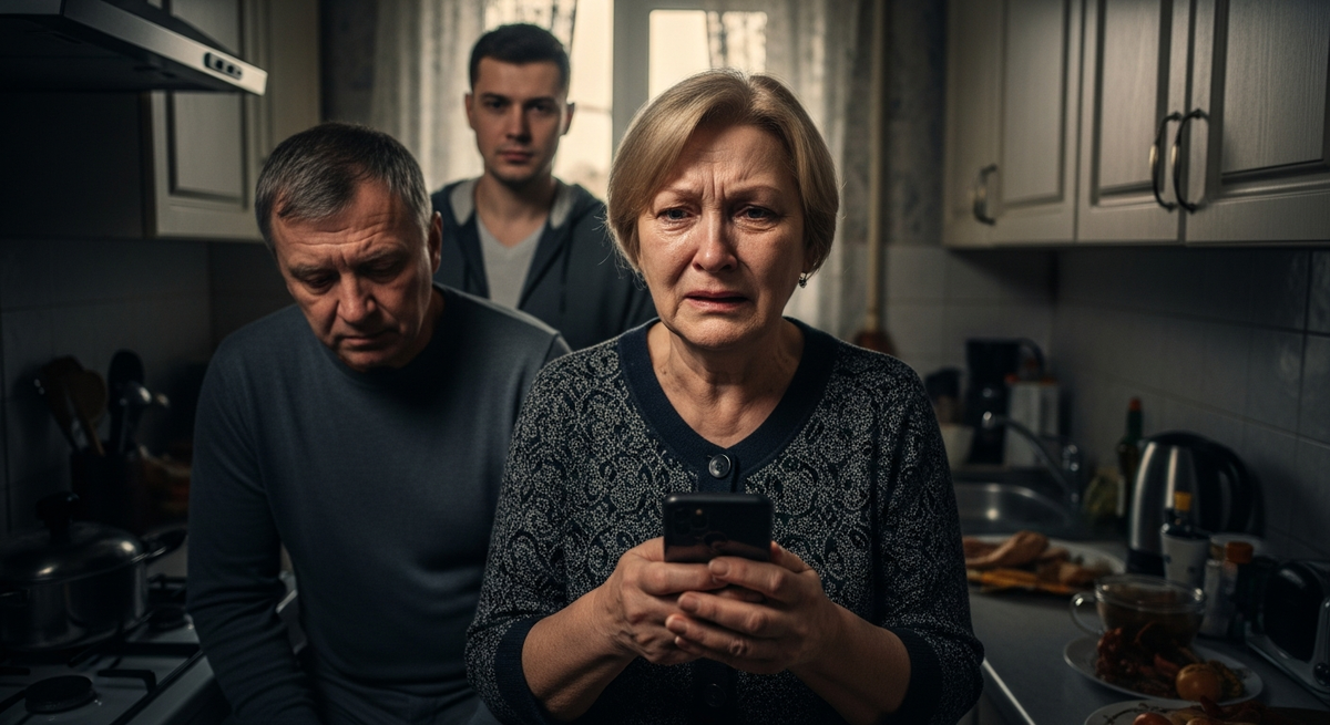 Тишина в комнате стала осязаемой. Нина Петровна застыла с открытым ртом. Виталик перестал жевать. Олег замер с телефоном в руке, глядя на жену с испугом.
