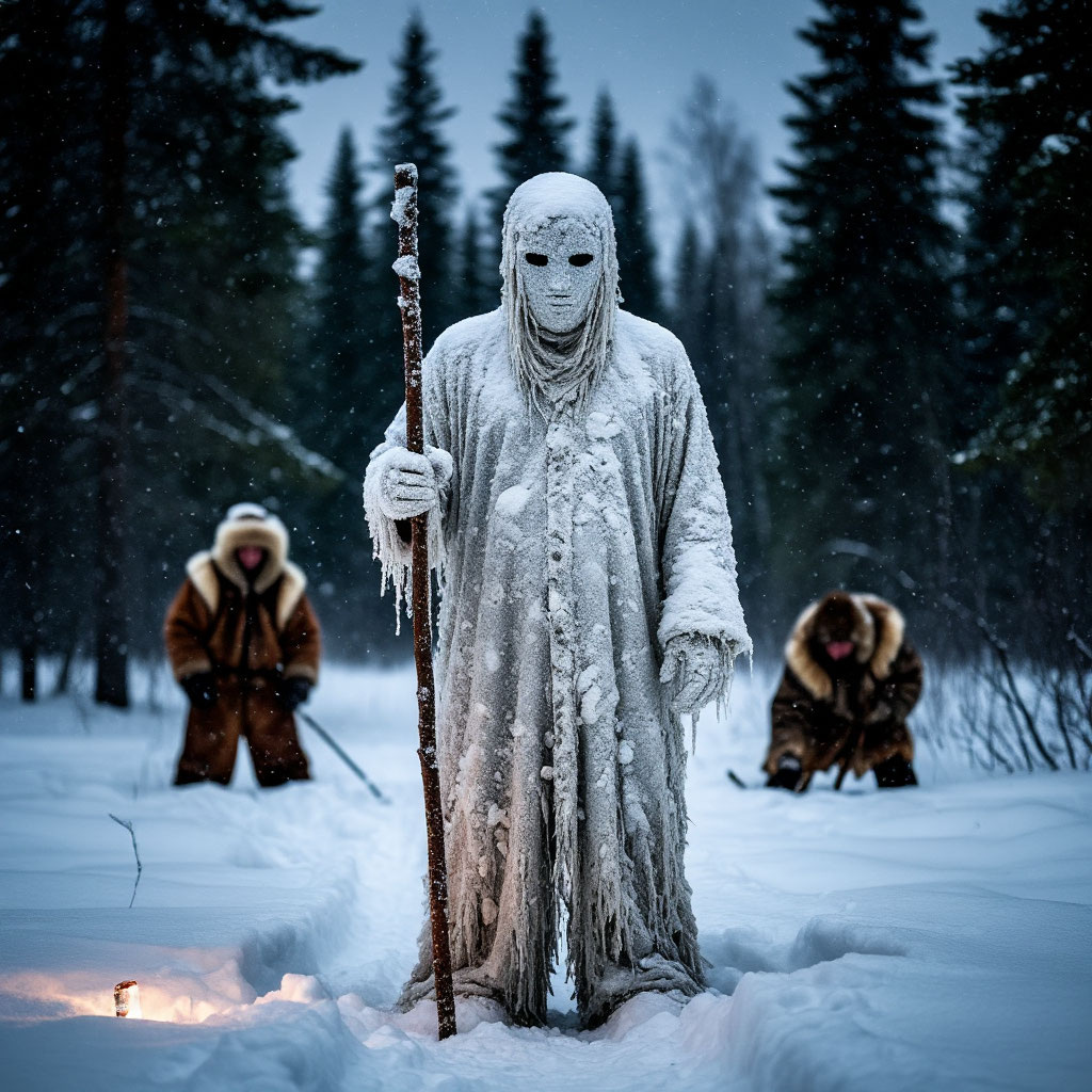 Это рассказал охотник Клим, когда мы сидели в избушке у печки. Он заметил, что я на стук ветра в трубе вздрагиваю, и усмехнулся: — Ха, было бы от чего пугаться. Вот я однажды услышал, как кто-то стучит по сугробам, будто зовёт. Был декабрь, глубокая ночь. Клим возвращался от капканов, когда началась пурга. Лес завыл, как зверь. И вдруг — тук… тук… тук… Ровный стук, словно палкой по снегу. Он остановился — стук тоже остановился. Пошёл — стук снова за ним, в такт шагам. Когда подошёл к поляне, увидел силуэт: человек, весь в снегу, как облепленный мукой, лицо не видно. В руках длинная палка, которой он отбивает ритм. — Ты кто? — крикнул Клим. Силуэт повернулся и стукнул палкой прямо в снег. После удара с дерева слетела огромная глыба снега — ровно туда, где Клим стоял мгновением раньше. — Второй раз не промажу, — сказал кто-то из-под снега. Клим бросился бежать. Стук шёл за ним всю дорогу, но не догонял, только сопровождал. А у самого дома стук исчез, будто его сдуло ветром. Старики ем