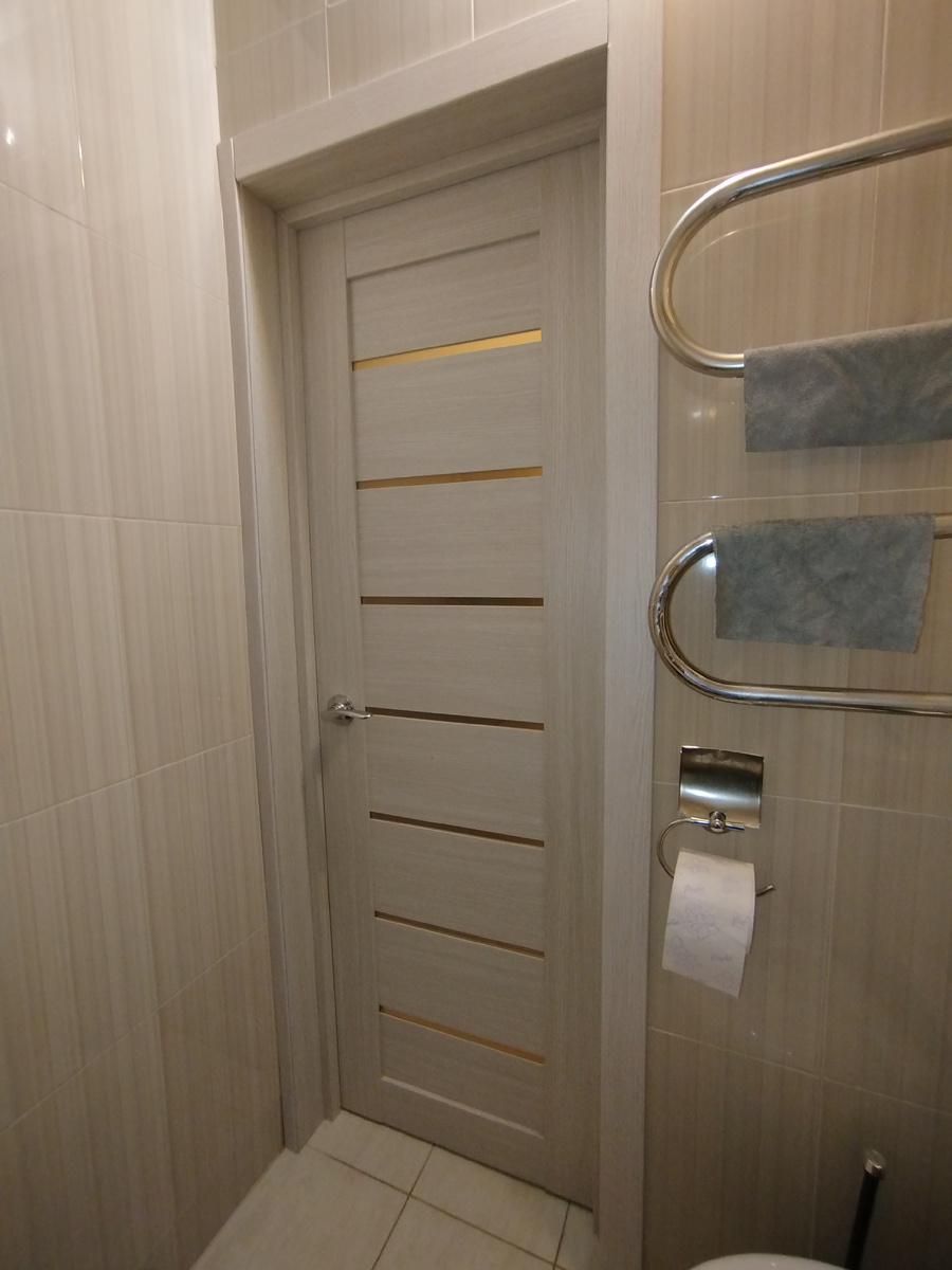 Поставила наличник, муж подруги распилил его вдоль (как говорят не имей сто рублей, а имей сто друзей) и я уже по месту отпилила верхушку.