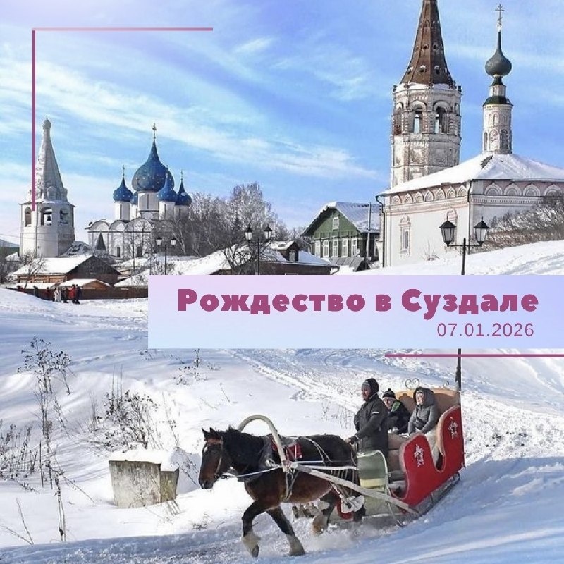 ❄Рождество в Суздале ✨Однодневный автобусный тур 📌07.01.2026. ✅07:00 отправление Н. Новгород пл Ленина ✅Обзорная экскурсия по Суздалю «Новогодние узоры Суздаля». ✅Экскурсия по территории Суздальского Кремля (ансамбль). ✅Посещение Спасо-Евфимиева монастыря. 🍝Обед+дегустация в кафе (за доп.плату - 1000 руб/чел.) . У гостей будет будет возможность продегустировать и приобрести местную продукцию медовухи и хреновухи, грибной икры, огуречного варенья... ✅Свободное время в Торговых рядах для покупки новогодних сувениров и знаменитой суздальской медовухи, фотосессия у главной елки страны на Торговой площади, а также возможность с ветерком прокатиться в расписных санях, запряженных лошадкой. (самостоятельно, услуги, катания, сувениры - доп. плата). ✅20:00 ориентировочное возвращение Н. Новгород пл. Ленина 💸Стоимость тура на 1 чел: Взрослый 4600руб., Школьник (до 14 лет) 4500 руб. В стоимость тура входит: • Проезд на автобусе / микроавтобусе; • Экскурсия • Входные билеты Пишите нам! 💙