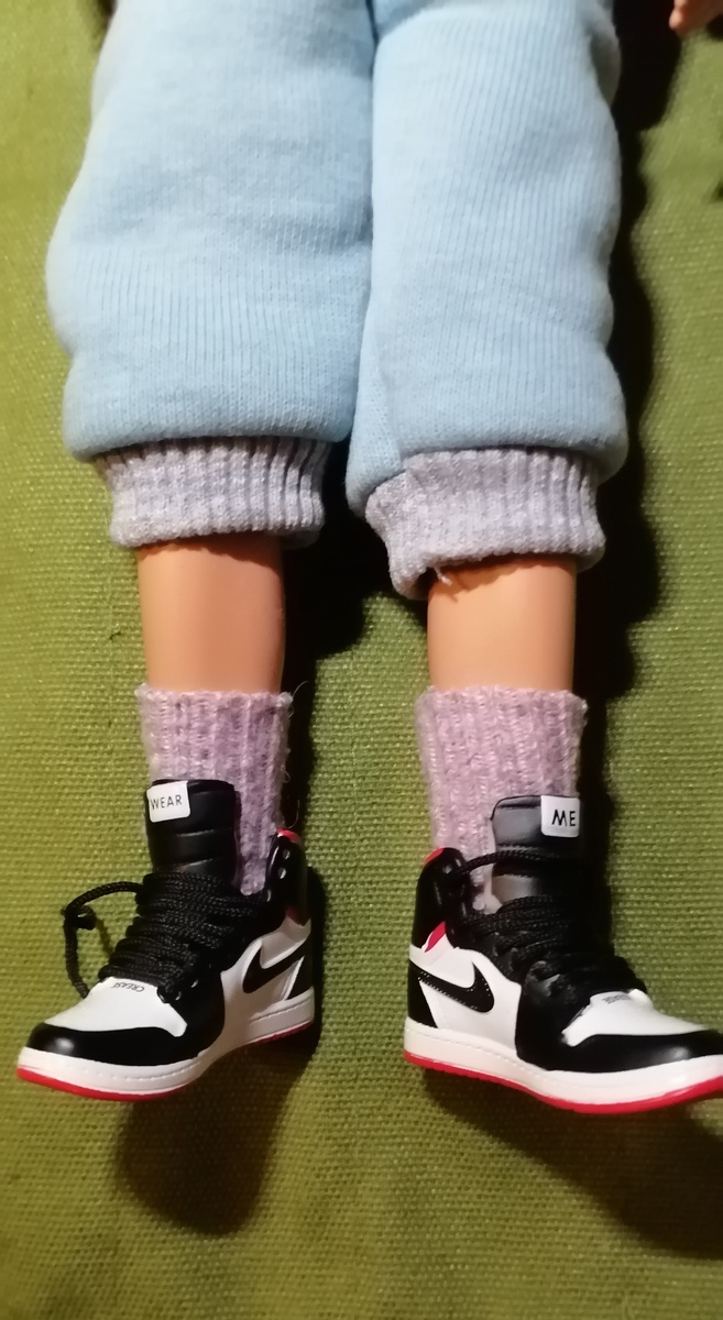 Привет) У кукол Барби Dream Besties (DB) каблучная стопа без шарниров... При этом ступня довольно широкая, так что даже обувь от Барби пышки налезает с трудом... Поэтому, (как всегда, впрочем😁), с поиском обуви для этих кукол Барби DB у меня проблемы... Конечно, им подходит обувь кукол своей же серии, но она вся - на каблуке... А иногда хочется надеть на куколку обувь на плоском ходу... Но никакая барбейская обувь с плоской подошвой просто не налезает на каблучную нешарнирную, широкую ступню Барби DB... В итоге я купила на ВБ очень недорогую кеновскую пластиковую обувь, 3 штуки за 280р.. Вид этой обуви мне не особо нравится, очень уж "топорный" фасон... Купила-то я ее для Кена DB, ему она тоже впору, но ему хороши более сложные варианты обуви, например, кроссовки-брелки... А вот черный ботинок - это именно та обувь, про которую я сейчас рассказываю... На Кене он смотрится очень простовато и даже примитивно как-то... А вот для Барби DB у меня нет обуви на плоской подошве, поэтому реш