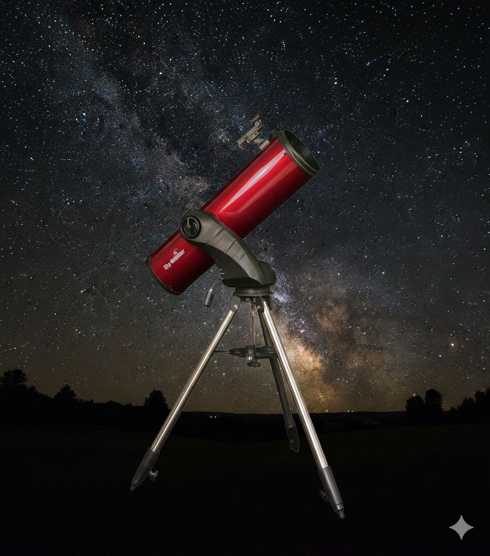 Готовы к незабываемым ночам под звездами? ✨ Этот красный телескоп Sky-Watcher сияет под Млечным Путем, приглашая вас в увлекательное путешествие по космосу. 🔭 Откройте для себя чудеса Вселенной!