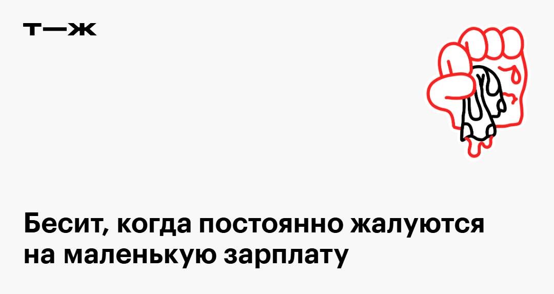 В моей жизни было очень много приятелей и друзей, которые постоянно жаловались на маленькую зарплату или отсутствие денег. Меня это ужасно бесит, потому что почти у всех нет семей, ипотеки, кредита, пожилых родителей, которым они скидывают деньги. Они все молодые и живут либо с родителями, либо в принадлежащей им хате. В основном эти люди мало куда ходят, почти не посещают концерты, выставки, редко едят в кафе и в целом нечасто тратятся. У меня почему-то всегда есть деньги на что-то, а у них никогда нет, притом что мой доход ниже. Разделяете позицию нашего читателя? 😡 — о да!!! 🌚 — меня не волнуют другие Если хочется высказаться: https://t-j.ru/inv-tg/postoianno-zhaluiutsia-na-malenkuiu-zarplatu-hate/