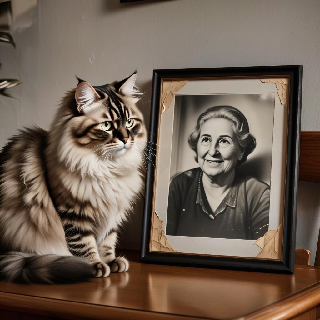 В маленькой квартирке на окраине города царила тишина, нарушаемая лишь тихим шорохом лап кота Тимы. Он сидел у двери, вспоминая свою хозяйку, которая всегда была для него не просто человеком, а целым миром. Её добрая улыбка, ласковый голос и нежные руки — всё это осталось лишь в воспоминаниях. Тим знал, что хозяйка больше не вернётся, и его сердце разрывалось от боли. От прошлой жизни у кота остались лишь воспоминания и фотография с черной ленточкой на тумбочке. На следующий день в квартиру вошла молодая девушка. Она была похожа на хозяйку Тимы, и кот сразу почувствовал её присутствие. Девушка тихо подошла к нему, и Тим, словно почувствовав её скорбь, начал ластиться к ней. Он потерся головой о её ноги.. Девушка взяла его на руки, и в этот момент шерсть у его глаз стала мокрой. Словно он плакал, выплёскивая всю свою боль и тоску. Девушка, внучка хозяйки, смотрела на кота с нежностью и грустью. Она понимала, что Тим потерял не только дом, но и свою семью. Она прижала его к се