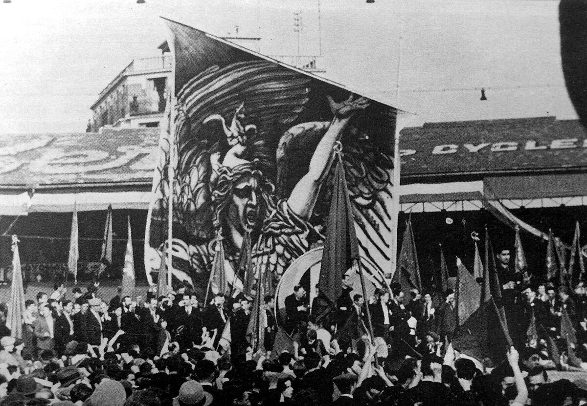 Заседания за мир и свободу, состоявшиеся 14 июля 1935 г. на стадионе Буффало в Монруже. Фотография Лассера