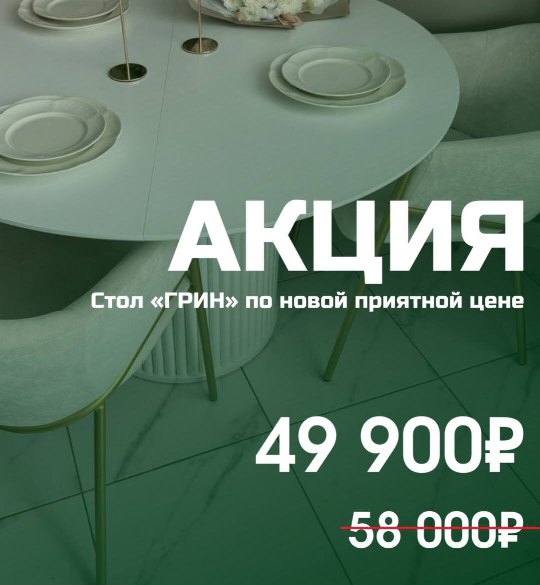 Уже завтра мы закрываем спец цену на столы «ГРИН» 49 900₽ вместо 58 000₽!