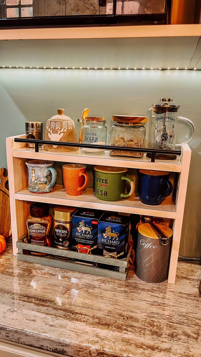 Настольная полка для кружек из дерева с ячейками своими руками