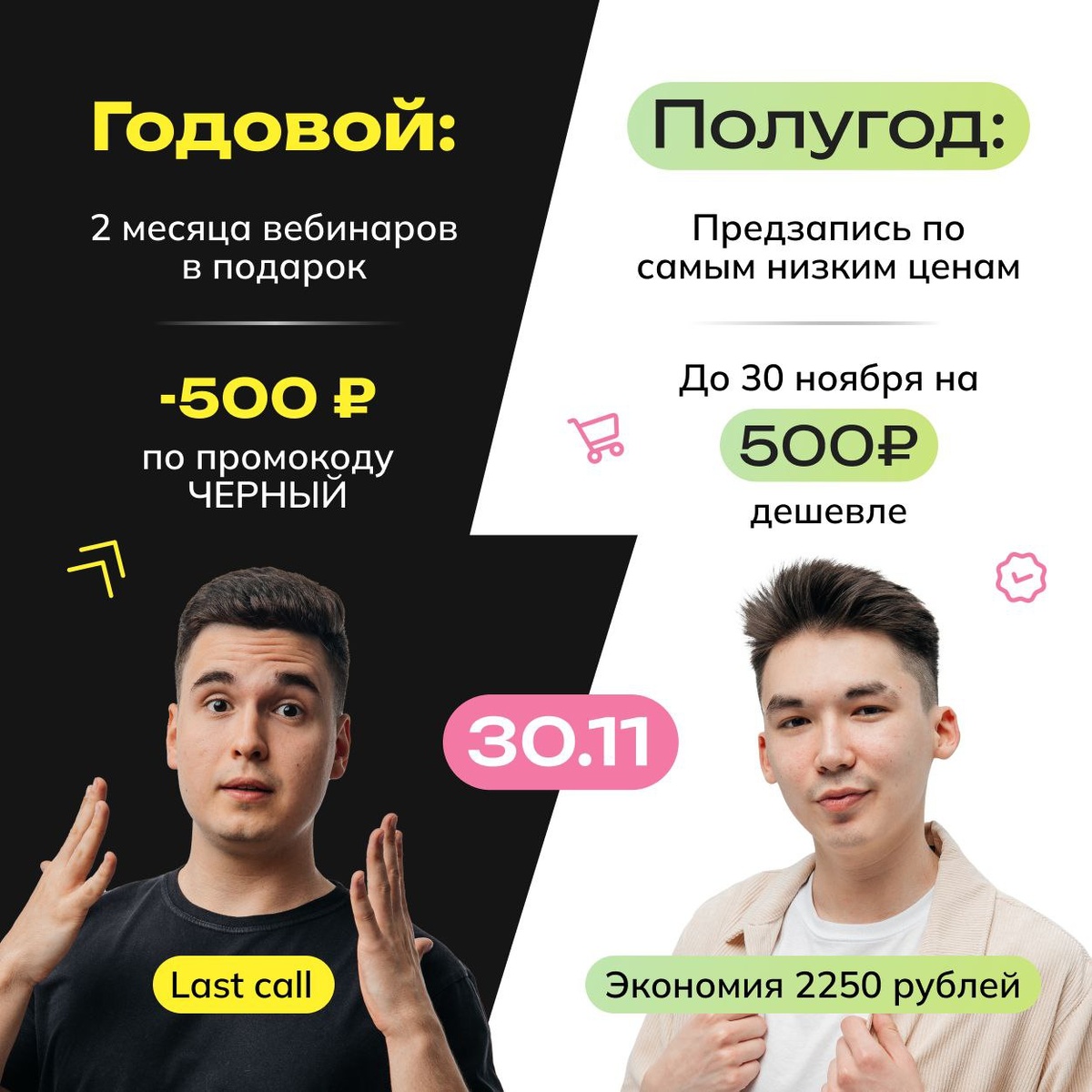 Распаковка Полугода — всё! С победителями розыгрыша свяжемся в течение суток ❤️ Напоминаю, что у вас есть ещё 9 часов, чтобы попасть на Полугодовой по самой ранней и низкой цене! В 23:59 по Москве курс станет дороже на 500₽ в месяц. Записывайтесь сейчас) Скидка на Годовой курс также действует только до полуночи 🌙 Если хотите начать подготовку уже сегодня, залетайте к нам с промокодом ЧЕРНЫЙ. Он даёт -500₽ на Годовой курс. Два месяца вебинаров в записи вы получите в подарок! Все подробности про Годовой вы найдёте здесь 🫶