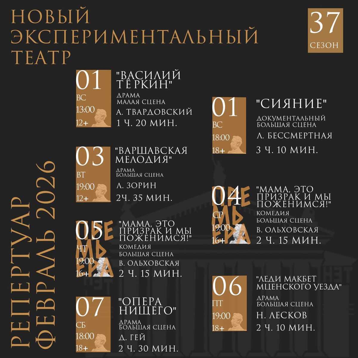 НЭТ ОБЪЯВЛЯЕТ СТАРТ ПРОДАЖ НА ФЕВРАЛЬ НЭТ с уверенностью смотрит в будущее, поэтому с 1 декабря 2025 года мы начинаем продавать билеты на спектакли, которые покажем в феврале 2026 года! Старт – в 11.00! В афише НЭТа традиционно представлены самые разные постановки. Мы обратим внимание лишь на некоторые из них. 7 февраля рекомендуем посмотреть «Оперу нищего» - один из самых массовых спектаклей НЭТа. В нем заняты 26 артистов, которые практически не уходят со сцены. 10 – 11 февраля приглашаем на премьеру спектакля «Дотянуться до мечты» по пьесе Аллы Соколовой. Скоро волгоградцы увидят на Малой сцене версию, поставленную Виталием Мелешниковым. 19-20 февраля на Большой сцене идет спектакль “Чайка. Мюзикл”, премьерные показы которого уже вызвали бурю зрительских восторгов. 26 февраля – еще один новый спектакль-читка «Своих не бросаем». Его сюжет написан по реальным событиям, в постановке сохранены имена прототипов главных персонажей, и он – про историю, которая пишется сегодняшними гер