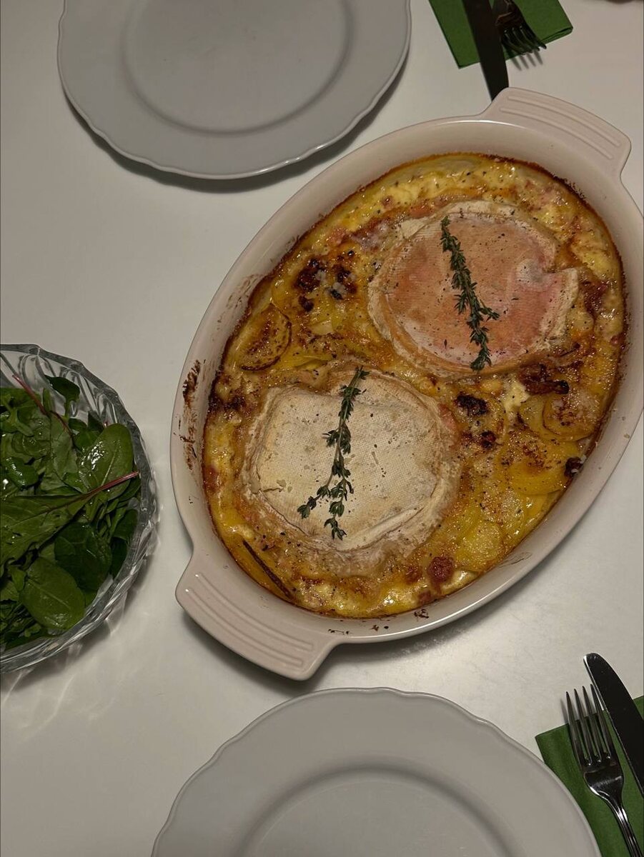 Сегодня у нас на ужин классика французских Альп — тартфлетт. Блюдо предельно простое по составу, но очень важны правильные ингредиенты и детали: картофель с низким содержанием крахмала (в Германии сорт Festkochend), белый лук, бекон (у меня смесь обычного и копчёного для раклета), сыр Реблошон, свежемолотый перец, тимьян и свежий чеснок. Это типичная еда альпийских курортов: тёплая, сытная, ароматная, созданная именно для холодной погоды. Сегодня, кажется, у меня получился лучший картофель в жизни🤤 И ещё важный момент: если у вас нет гаджетов для раклета и фондю, то это блюдо легко заменяет их и при этом выглядит на столе очень красиво!