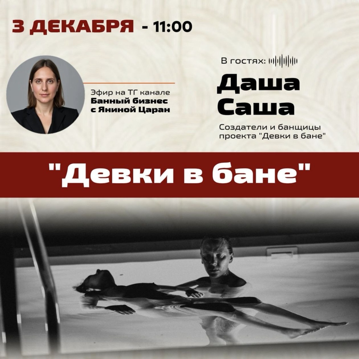 3декабря в 11:00 Продолжаю традицию вести эксклюзив эфиры на своём бизнес канале. В новом году будет ребрендинг и проф платформа по стримам и записям. Развиваем женское направление, как отдельный проф проект 😏 тг https://t.me/womens_rusbanya вк https://vk.com/club232992797 Банный бизнес с Яниной Царан