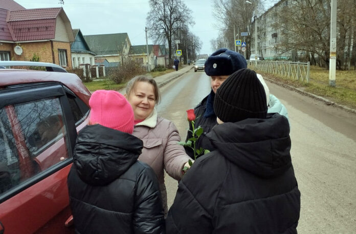 В Людинове юные инспектора движения благодарили всех мам за соблюдение ПДД