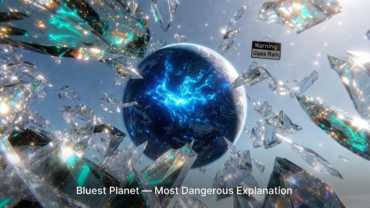 1. Голубая планета… из чистого ужаса 🌌 На снимках телескопов HD 189733b выглядит почти романтично — идеально синяя сфера, будто новый «брат» Земли, только ярче и чище. Такой чистый космический индиго, что хоть на обои ставь. Но вот сюрприз: если бы вы оказались рядом, то увидели бы не небесную гладь, а кипящий ад без горизонта. Там не бывает ни голубого неба, ни спокойного света — только ярость температуры и бурь. Почему же она выглядит синей, если её атмосфера — полная противоположность земной? 🌪️💙 2. Мини-портрет планеты, который хочется забыть 🔥🌪️ HD 189733b — это не космический курорт. Это планета, которую природа собрала из слова «перебор». — температура около 1000°C; — год длится всего 2,2 земных дня — моргнули, и пришла следующая весна; — ветра разгоняются до 7000 км/ч — быстрее пули; — атмосфера — смесь огненных бурь и силикатной пыли; — поверхности нет вообще — один бесконечный кипящий газ. Это одна из самых жестоких планет, известных астрономам. И уж точно не мес