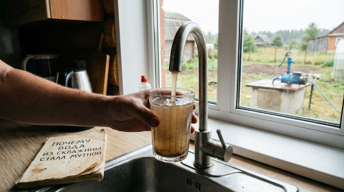 Вы открываете кран — а вместо прозрачной воды течёт что-то мутное. Знакомая ситуация для владельцев скважин в Подмосковье. Первая мысль: «Наверное, песок попал». Но в 80% случаев песок тут ни при чём. Мутная вода из скважины — это симптом, а не диагноз. За ним может скрываться глина, растворённое железо, воздух в системе или даже бактерии. И каждая причина требует своего решения. Разберёмся, как определить, что именно происходит с вашей водой, и не потратить деньги на бесполезные фильтры.