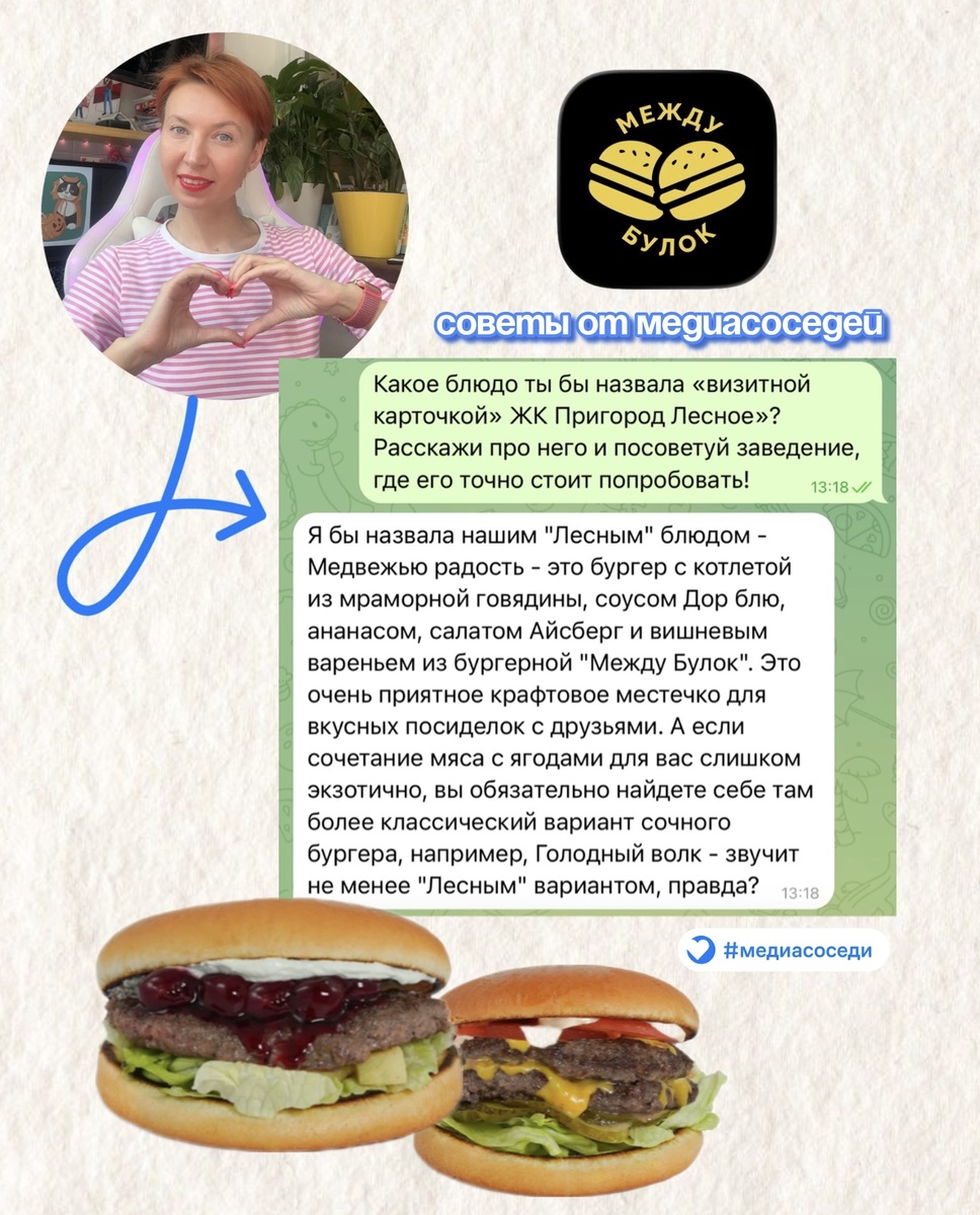 Привет, соседи! Сегодня делимся необычными рекомендациями от наших замечательных медиасоседок. Каждая увидела наш квартал по‑своему — и все три взгляда достойны вашего внимания! Гастрономический символ Пригорода Лесное Первая соседка открыла нам «вкус квартала». Тайный уголок силы Вторая соседка поведала о месте, которое стоит посетить каждому — здесь можно на минуту остановиться и почувствовать связь с историей места. Театральные параллели и творческие события Третья медиасоседка — режиссер и актриса поделилась своим творческим видением на квартал и подметила, где проходят самые яркие встречи! А вы уже нашли своё особенное место в Пригороде Лесное? Делитесь в комментариях любимыми локациями и историями — давайте вместе создадим карту нашего уникального квартала! #медиасоседи