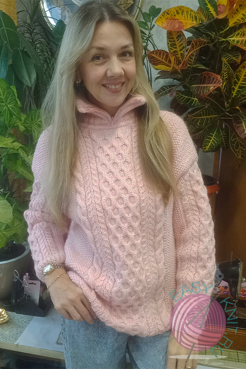Отличного настроения всем рукодельницам! Благодарю, что зашли посмотреть на мои вязальные итоги месяца. В ноябре у меня довольно хороший результат работы. Довязала розовый свитер спицами с разными узорами из жгутов. Напомню, использовала 2 вида пряжи Ализе ангора голд № цвета 271 (80% акрил, 20% шерсть 100г/550м ) и Вита бриллиант цвет № 5109 (45% шерсть, 55% акрил, 100г/380м). Вязала в 2 нити на спицах 3,5 мм. Размер 42 - 48, расход 612 грамм. Пришлось помучатся немного с воротником, вязала в первый раз, примера перед глазами не было, но результат очень нравится, главное удобно, можно расстегнуть или застегнуть и шея в тепле. Воротник двойной, получается вязала от горловины кетлевкой "в карман", затем на высоту 18 см, далее крючком соединила петли на спице с началом вязания горловины резинки тамбурным швом. Между двумя частями горловины вшила потайную молнию, пришивала вручную иглой. Жаль не успела сфотать все этапы вшивания, есть только несколько. Второй готовой работой стали носки