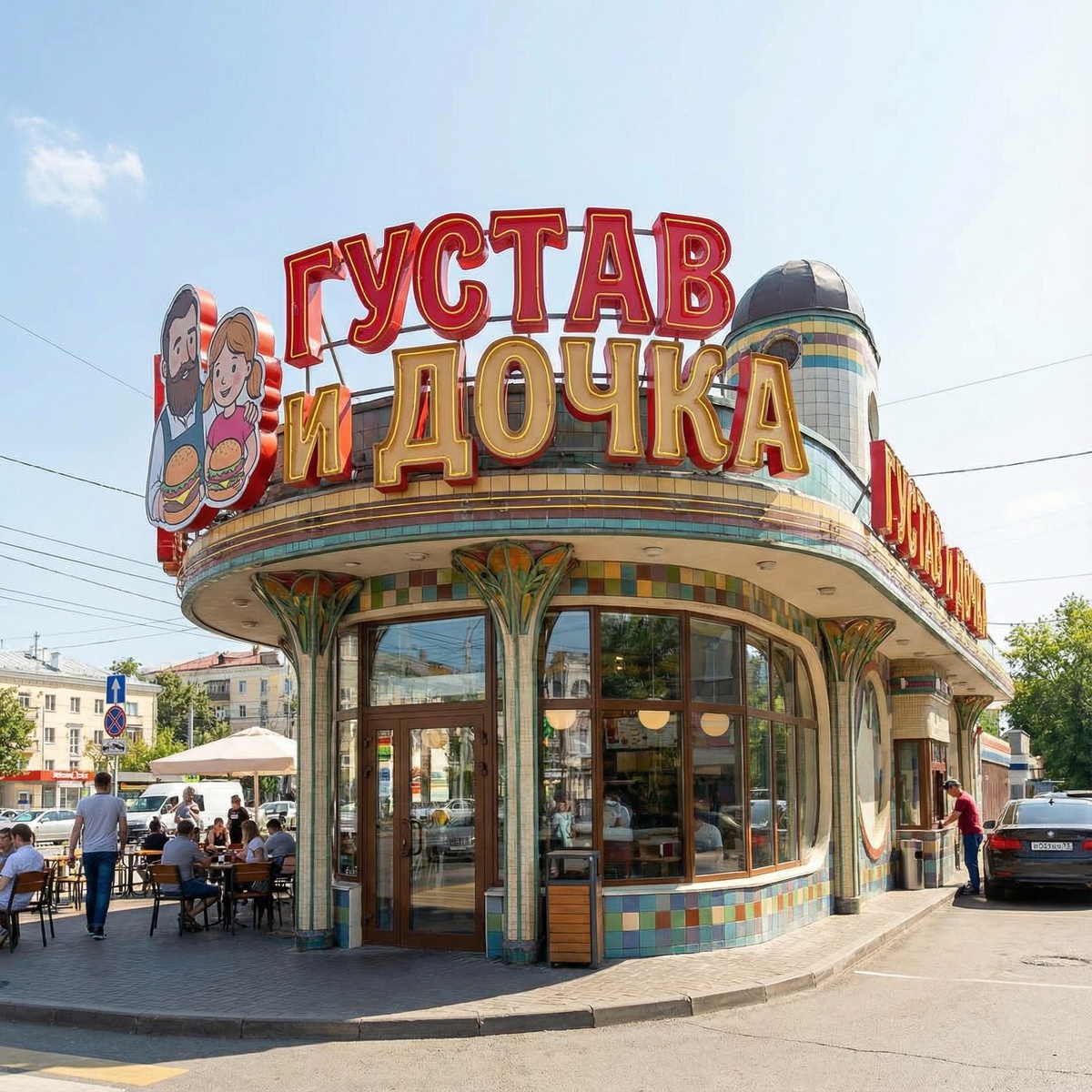 Проверим, может ли нейросеть творить уже как человек *"Густав и Дочка" - вымышленный бренд, исключительно для демонстрации возможностей ИИ. Загрузил в GPT 5 фото и название, через 15 минут получил такой результат... #Рекомендованный сегмент целевой аудитории: — Родители с детьми 4–12 лет #Рекомендованный триггер для целевой аудитории: — Папин контроль #Рекомендованное УТП: — Густав и дочка — первый фаст‑фуд с детским меню без искусственных добавок #Выбранный слоган для рекламы: — Первый фаст‑фуд со стандартом “Как для своей дочки”. Попробуйте сегодня #Описание визуала рекламируемого продукта: — Детский набор: мини‑бургер с румяной кунжутной булочкой (лёгкий блеск, тонкая корочка), сочная котлета с аккуратными гриль‑метками, ломтик помидора, свежий лист салата, прозрачный соус без «ярко‑химичных» оттенков; печёные дольки картофеля с золотистой матовой поверхностью; напиток — молочный коктейль или яблочный сок с конденсатом на стенках #Самая лучшая креативная концепция для рекламы