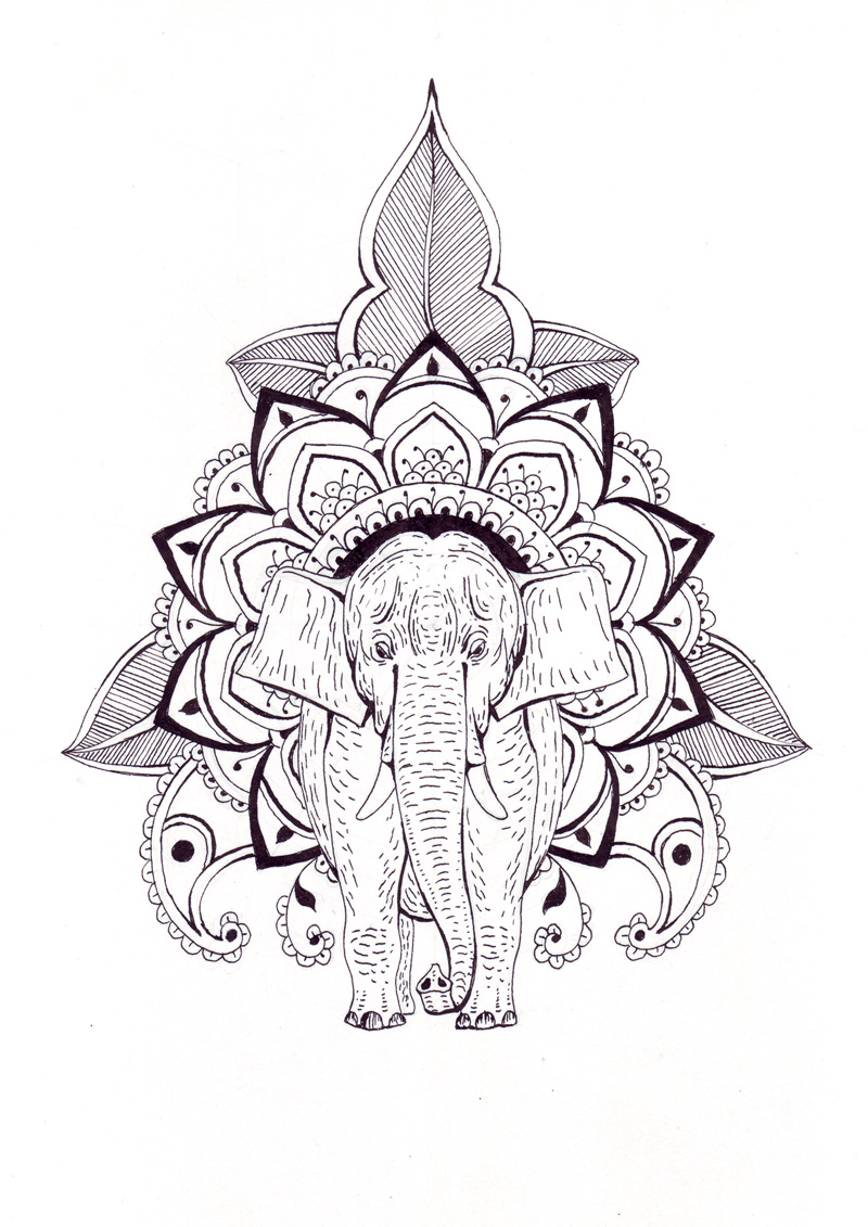 Было: рисунок тушью. После после запроса заменить слона на лошадь и сделать золотое свечение.