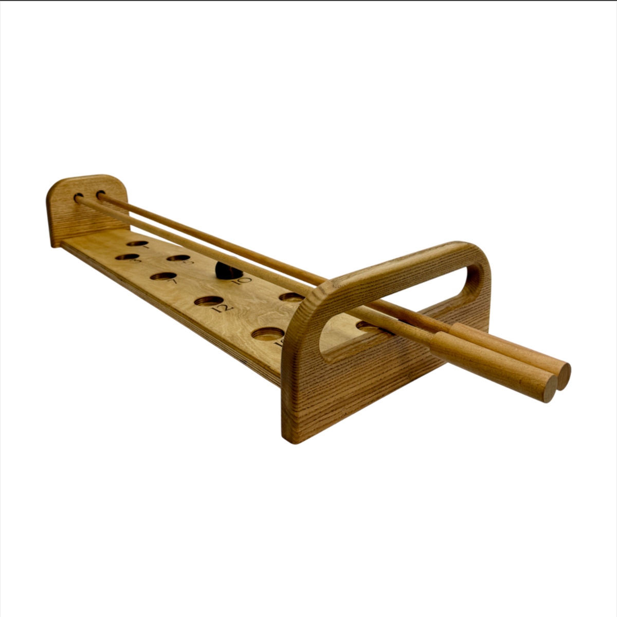 Цель игры – довести шарик до лунки с наибольшим количеством очков. ПРАВИЛА ИГРЫ Поместите шарик на наклонные рейки в начальной точке. Медленно раздвигайте рейки, держась за рукоятки, чтобы шарик начал двигаться, избегая падений. Как только шарик пошел вверх, но еще не упал, соедините рейки обратно. Повторяйте эти действия по мере необходимости. «Ролл равновесия» - увлекательная настольная игра, требующая баланса и скоординированных действий, способствует развитию моторики, внимательности и точности. Манипулируя наклонными рейками, играющие стремятся провести шарик по определенному маршруту, демонстрируя мастерство и сосредоточенность. Основное назначение игры – развитие мелкой моторики, глазомера и концентрации. Кроме того, она стимулирует пространственное мышление и способность прогнозировать траекторию. В процессе игры участники учатся контролировать свои движения, проявляют терпение и развивают умение решать задачи в условиях ограниченного времени. Конструкция игры позволяет адап