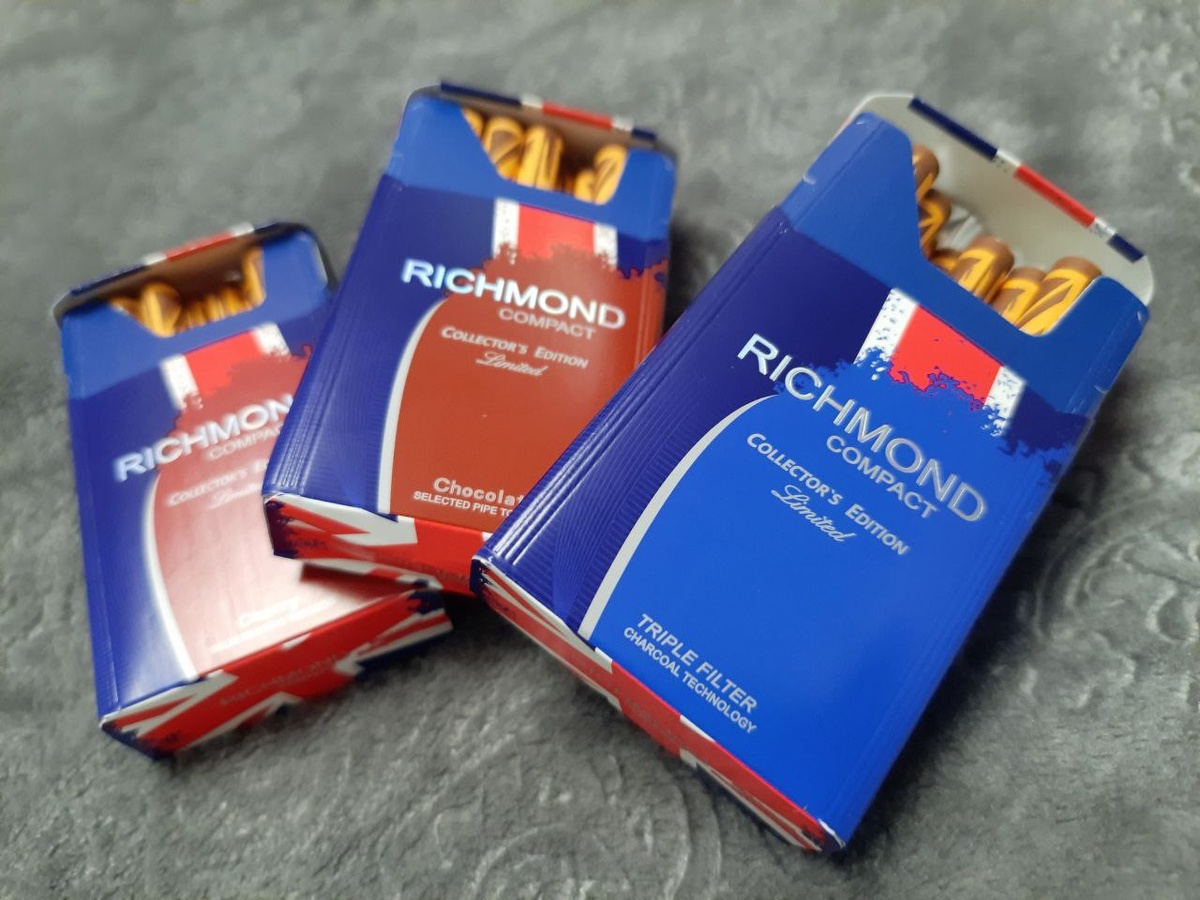 Сигареты Richmond я за всю свою историю курения видел в разном дизайне, видов не перечесть. На днях, гуляя по вещевому рынку, наткнулся на неожиданный вариант. Сначала думал – какие-то другие сигареты скрываются «под британским флагом», пригляделся – Richmond. Да не тот. Разобрало любопытство – купил сразу три версии: вишню, шоколад и классику. Об этом продукте и пойдет мой сегодняшний рассказ.
