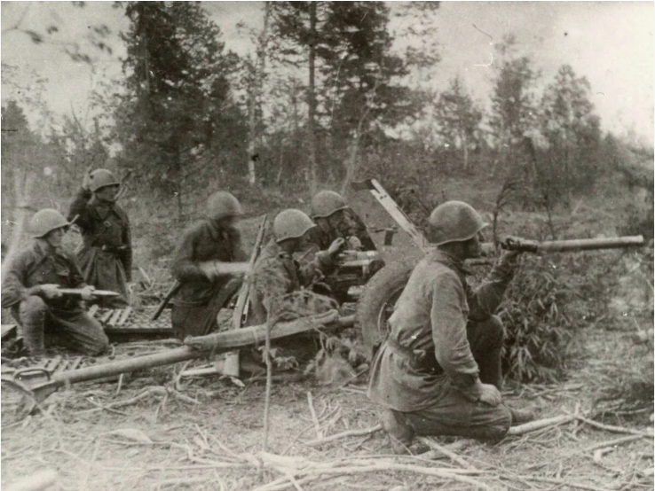 Наш противотанковый взвод так и продолжает поддерживать четвёртую роту, которая наступает вдоль реки, по берегу которой проходит лесная дорожка. Пятая рота, при поддержке одного из миномётных взводов, наступает вдоль просеки, на которой мы воевали. Ну а шестая, поддерживаемая вторым миномётным взводом, наступая вдоль кромки леса, должна освободить, ближайшие деревни, в которых по показанию пленных, стояли тылы их батальона. В резерве оставалась пулемётная рота, которая двигалась сразу за шестой. Дождь наконец-то прекратился, но хмарь так и висела в воздухе, так что нас хотя бы сверху не мочило. Помародёрить нам толком Иван не дал, поэтому забрав у немецких пулемётчиков только пару парабеллумов и прихватив несколько коробов со снаряжёнными патронными лентами, вместе с пехотой движемся к реке. Рабинович находит конец телефонного кабеля, который он пролюбил, убегая от немцев, и наш лейтенант назначает старшему на батарее сержанту Волохову место встречи, которое изменить нельзя. Фима же отправляется сматывать нитку связи. Примерно через час, двигаясь строго на север, выходим прямо к реке, где и встречаемся с нашими. Наконец-то можно передохнуть, избавившись от не очень-то и тяжёлой в самом начале пути поклажи. Но в конце, я уже готов был по-тихому, утопить один из двух коробов.