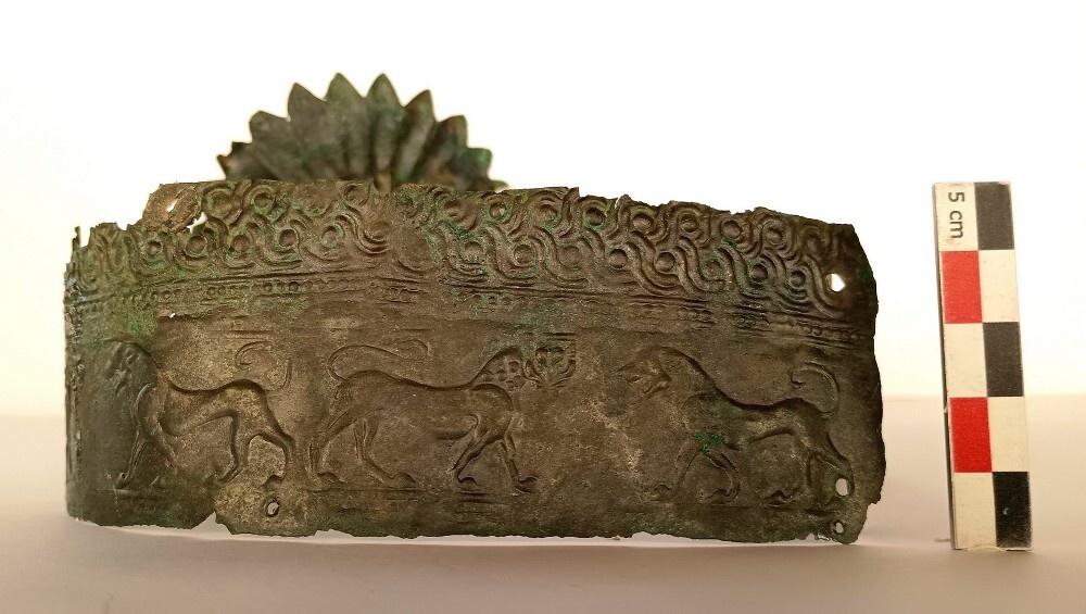 Главной находкой стала гробница молодой женщины, получившей имя «Дама с перевернутой диадемой». Она жила во второй половине VII века до н. э. и была погребена с уникальным набором бронзовых украшений и роскошных предметов. Ее голову украшала бронзовая диадема с геральдическими львами и солнечной розеткой — символами власти и высокого ранга. Однако в момент погребения диадему поместили вверх ногами.