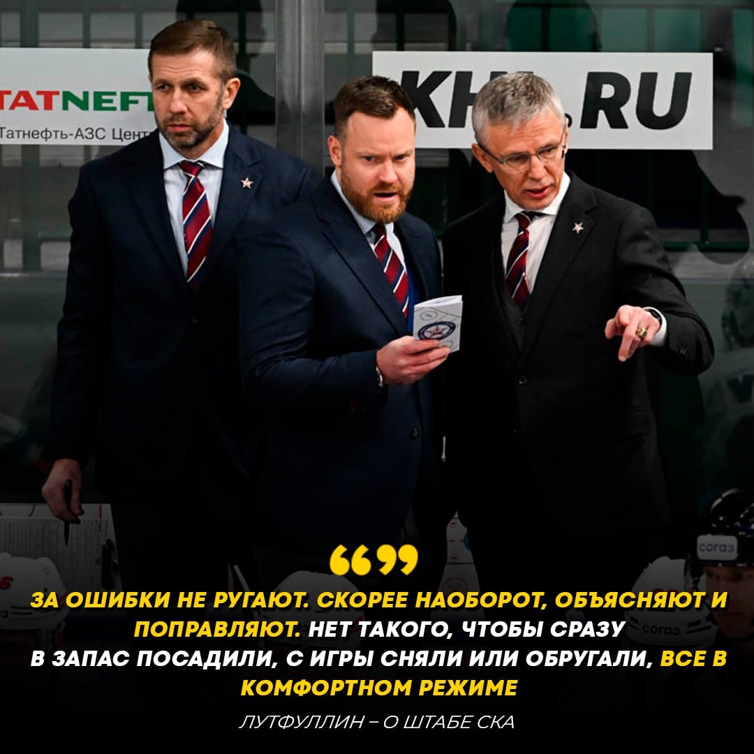 🔥🇷🇺 Игнат Лутфуллин высказался о взаимодействии с тренерским штабом Игоря Ларионова. «Ключевое – важно чтобы я сделал нужные выводы сам, обратил внимание на те или иные аспекты игры. То есть тренеры подсказывают, направляют», – сказал 20-летний нападающий СКА.
