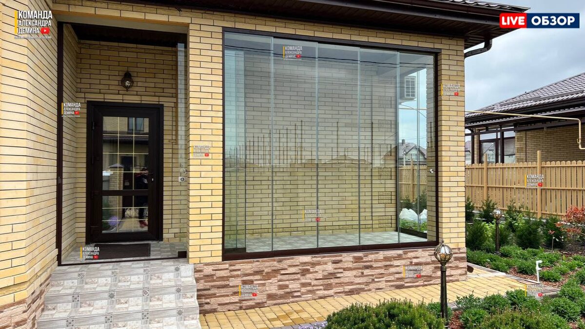 На данном проекте мы сделали на входе безрамное раздвижное остекление за место маятниковой двери. Все проемы раздвижные!
