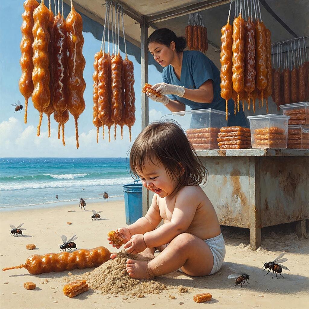 📌 Медицинская история. Подумайте дважды перед тем, как кормить ребёнка Родители решили укрепить здоровье своего двухлетнего малыша, отправившись всей семьёй на морской курорт. Казалось бы, всё идеально: море, свежий воздух, заботливые родители рядом... Однако маленькая девочка ещё не знала, какое испытание её ждет впереди. Вы знаете, что такое чурчхела? Эта традиционная восточная сладость, которая выглядит довольно соблазнительно: орехи, покрытые застывшим виноградным соком. Но именно эта вкуснятина чуть не стоила ребёнку здоровья и жизни. Представьте себе картину: яркие «колбаски» с орешками висят прямо на открытом воздухе уличного базара. Их активно атакуют мухи и прочие насекомые, оставляя следы своей жизнедеятельности прямо на поверхности пищевого продукта, который даже не моют перед употреблением. Конечно, продавцы не пользуются перчатками, да и случайно упавшие чурчхелы часто возвращаются обратно на продажу по принципу «быстро поднятое не считается упавшим». Вот и получает