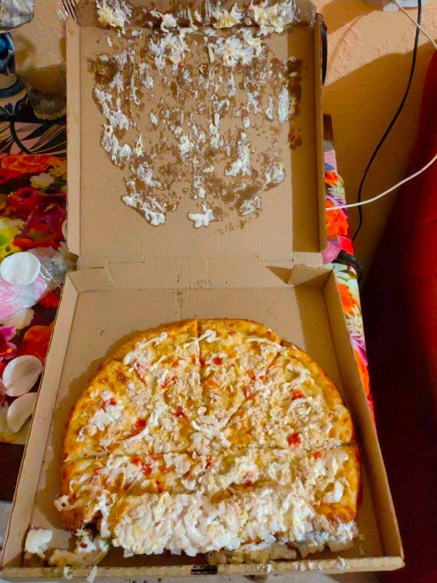 Ты заплатил бабки за свою ПИЦЦУ и накинул 20% курьеру за доставку,ждешь себе горячую пиццу домой и приезжает вот ОНО