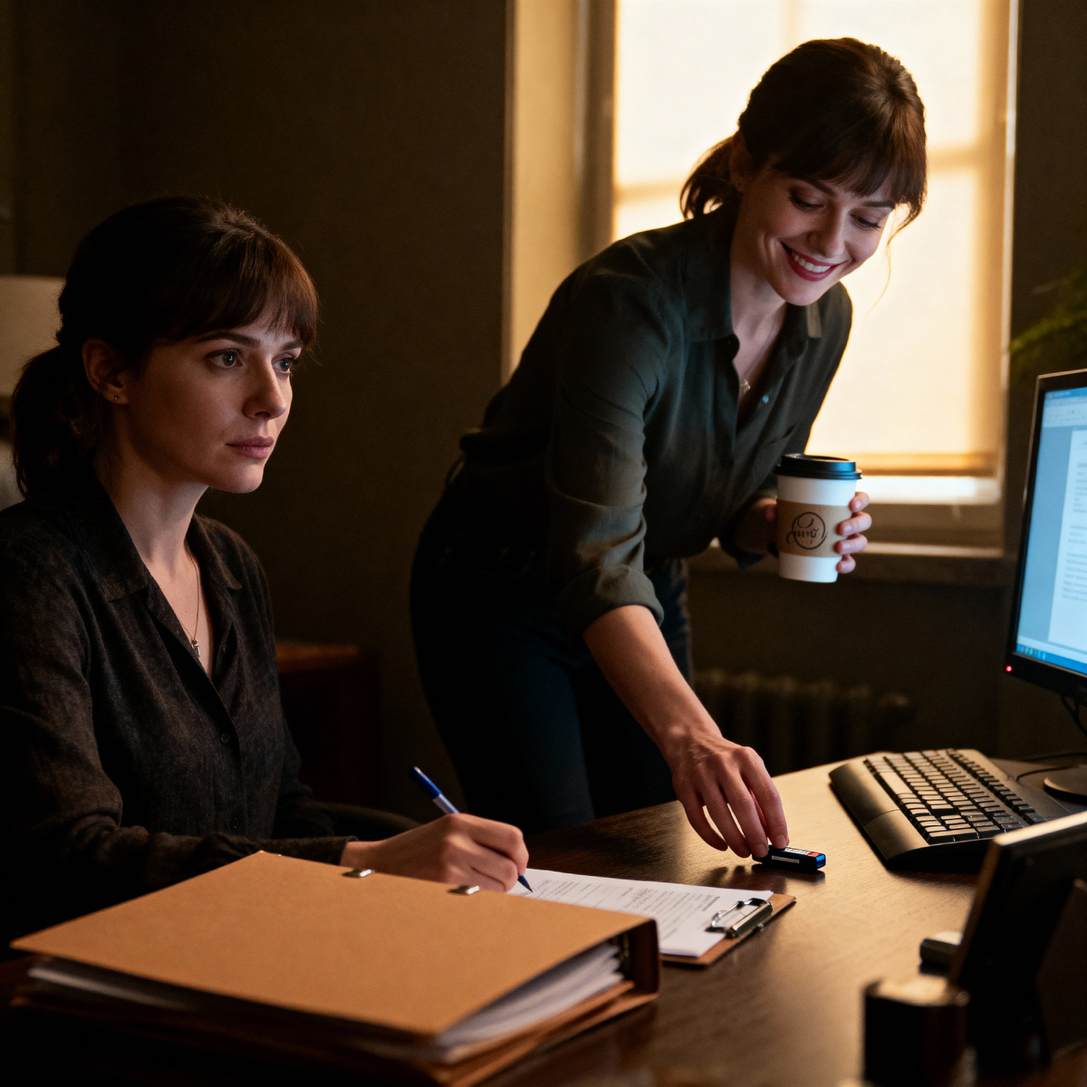 Она мысленно возвращалась к тому роковому дню снова и снова. Кофе Маргариты. Ее сладкая улыбка. Папка. И еще одна деталь, которая вдруг всплыла в памяти: пока Алина подписывала документы, Маргарита отошла к своему компьютеру, но не садилась, а будто что-то поправляла на столе. Возможно, флешку?
