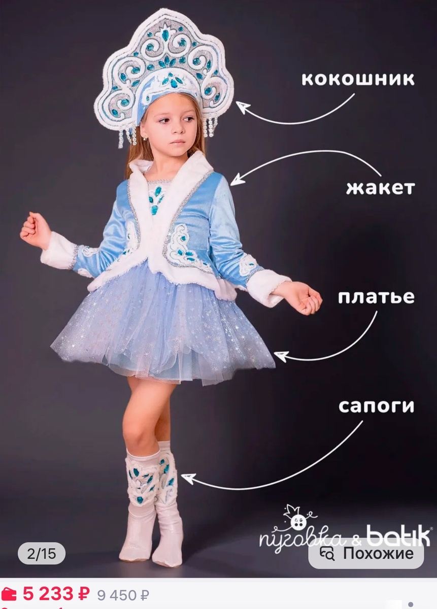 Приближается пора новогодних праздников и, вместе с тем, хлопот по выбору детских костюмов для предстоящих утренников и различных школьных мероприятий. Проверим ассортимент на Вайлдберриз? Начнём с девочек🩷 Один из символов Нового года, конечно, Снегурочка. Выбрала для вас два довольно оригинальных варианта в немного отличающейся друг от друга цветовой гамме. В каждый комплект входят все элементы костюма - от кокошника до сапожек (очень удобно, что не нужно дополнительно подбирать, например, обувь). Артикул первого костюма: 306054279, второго: 435533160 Снова два костюма на выбор, на сей раз - Дюймовочка. Оба варианта совершенно очаровательны, в комплект входят платье и шапочка-колокольчик. Артикул первого костюма: 179123993, второго: 490582712 В этот костюм я просто влюбилась - невероятная Шахматная Королева. В комплект входят платье и фетровая корона (воротник платья съёмный, тоже фетровый). Артикул: 306054319 Всё реже встречаются Красные Шапочки на праздничных мероприятия