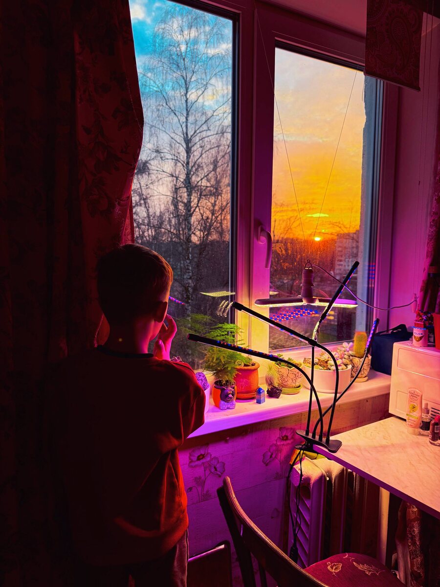 Любуется закатом. Как же здорово среди пасмурных дней было увидеть солнечные лучики