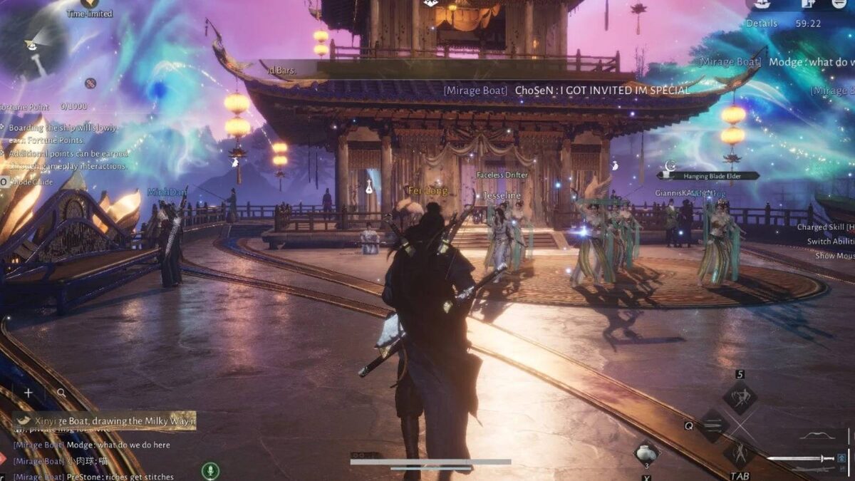 Для участия необходимо открыть регион Кайфэн и завершить вводный квест «Цинхэ». Ищите иконку золотого воробья в интерфейсе в воскресенье вечером или утром понедельника, телепортируйтесь на судно и наберите 1000 очков удачи в мини-играх, чтобы получить подарок от владельца корабля. Это серверное мероприятие проходит еженедельно перед сбросом мира. Доступ открывается через уведомление, которое приходит всем путешественникам в регионе Кайфэн. Чтобы принять приглашение, кликните по символу «Ограниченное событие» в углу экрана. Система предложит переключиться в многопользовательский режим. Подтвердите действие, чтобы перенестись на палубу и запустить таймер сбора очков. Главная цель — накопить 1000 единиц удачи. Баллы начисляются пассивно каждые две минуты, но участие в активностях ускоряет процесс: Сама «Лодка-мираж» является не только локацией, но и премиальным транспортом. Владелец судна вкладывает средства в призовой фонд, от чего зависит ценность наград для гостей. Чтобы купить собств