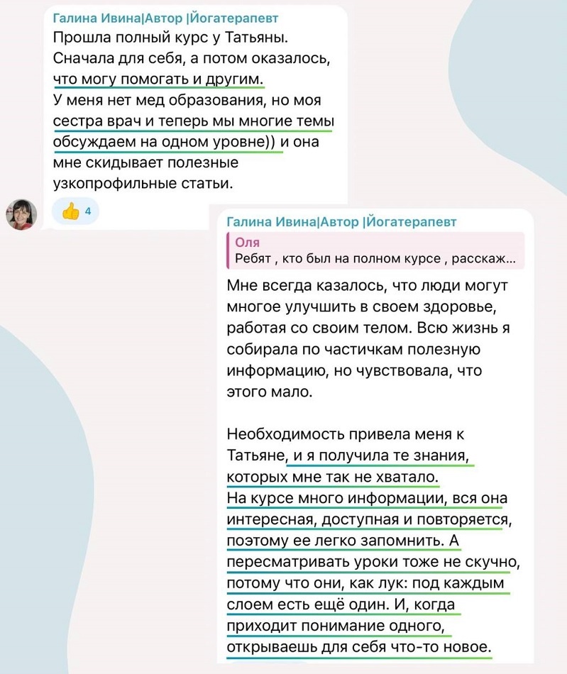 Под постом про Чёрную пятницу появилось такое сообщение: «Ребят, кто был на полном курсе, расскажите, как вам? Давно смотрю на него, но пока не решалась 😄 А тут ещё и скидка! Хочу услышать впечатления, чтобы решиться 🙏» И меня очень тронуло, сколько выпускников Академии откликнулись. Хочу поделиться их отзывами здесь — вдруг они помогут тем, кто сомневается: «Знания действительно глубокие и очень ценные я получила. И все прошло через мое тело и показало отличный результат» «Я преподаю больше 20 лет и могу сказать, что курс Татьяны - это моё самое лучшее и ценное образование» «Я очень довольна своими результатами и результатами моих клиентов. После каждого класса получаю много положительных откликов» «Обучение очень интересное, Татьяна даёт глубокие знания, поддерживает в течении обучения, мотивирует и что самое главное, обучение основанно на новых научных исследованиях» «Это было лучшее решение и вложение в свой профессиональный рост» «Это первый курс в котором анатомия не непонятная