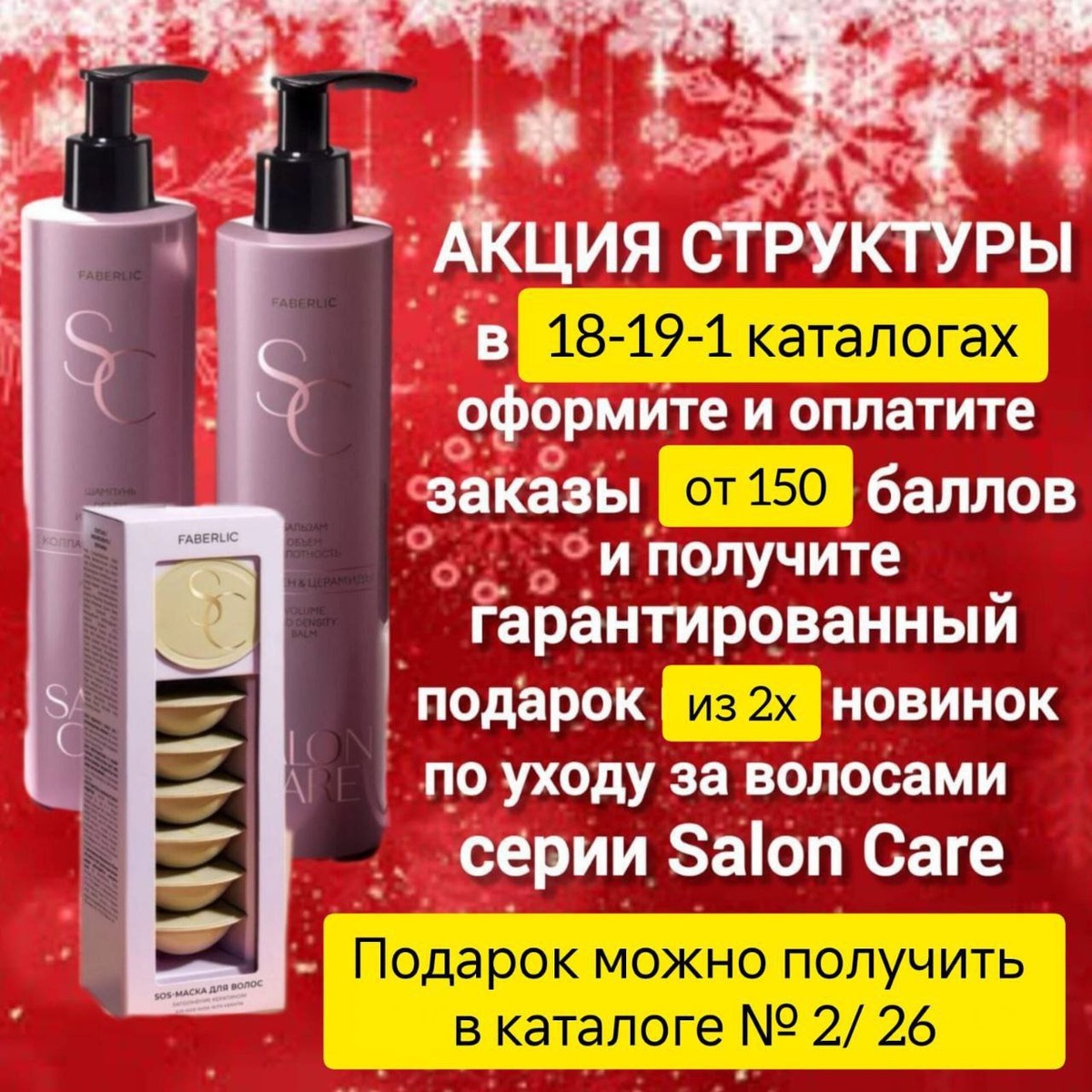 4️⃣ И ещё одна эксклюзивная категория подарка, для тех кто оплачивает каждый каталог от 150 баллов! 💸 *ОПЛАТИ* суммарно БЕЗ пропусков от 150 баллов каждый каталог с 18/25 по 01/26 и получи 🎁 подарок шикарный набор для ухода за волосами из двух новинок.
