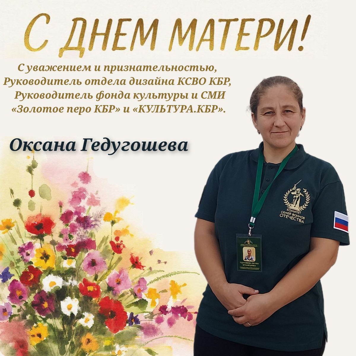 Сердечно поздравляем вас с Днём Матери! От всей души желаем вам счастья в этот замечательный праздник! Сегодня я хочу выразить свою искреннюю признательность и глубокое уважение женщинам, чьи сердца наполнены любовью, гордостью и преданностью своим обязанностям перед Родиной. Мы обращаемся к матерям солдат и военнослужащих, которые сейчас находятся на передовой — к тем, кто каждый день служит нашей великой стране, защищая её мир и благополучие. Матери военных — особые женщины. Они воспитывают сыновей, готовых защищать честь своей родины, проявлять мужество и стойкость даже в самые трудные времена. Их сыновья, служащие Отечеству, становятся героями наших дней, демонстрируя силу духа, патриотизм и преданность высоким идеалам. Мы благодарим вас, дорогие матери, за вашу любовь, терпение и мудрость. Благодаря вам наши защитники обретают силы идти вперед, преодолевать трудности и достигать побед. Ваше сердце хранит тепло семейного очага, которое согревает каждого солдата вдали от дома. Пу