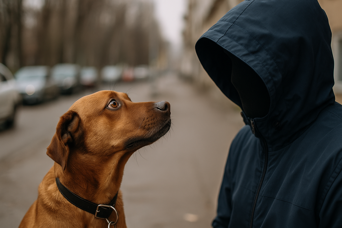 - “Заражение” от хозяина. Вот здесь обидно, но правда. Если вы сами напрягаетесь, когда видите человека в капюшоне (“ой только не сейчас”), берёте поводок короче, замираете, тащите собаку быстрее — вы сообщаете: “Да, тут опасно”. Собака вам верит.