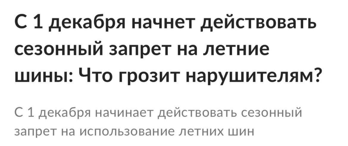 С 1 декабря вступает в силу сезонный запрет на летнюю резину Всех, кто выйдет на дороги без зимних шин, смогут оштрафовать на 500 рублей. Ограничение будет действовать до конца февраля🥴 #работа, #вакансия, #заработок, #деньги, #подработка, #работасейчаc, #водитель, #водителю, #работаводителем, #такси, #таксист, #работавтакси, #курьер, #работакурьером, #доставка, #доставкаеды, #ЯндексЕда, #DeliveryClub, #ЯндексТакси, #Ситимобил, #ЯндексРабота, #Таксиру, #Uber, #UberEats, #GetTaxi, #авто, #автомобиль, #работанаавто, #работанаавтомобиле,, #арендаавто, #такспарк, #ищуработу, #вакансии