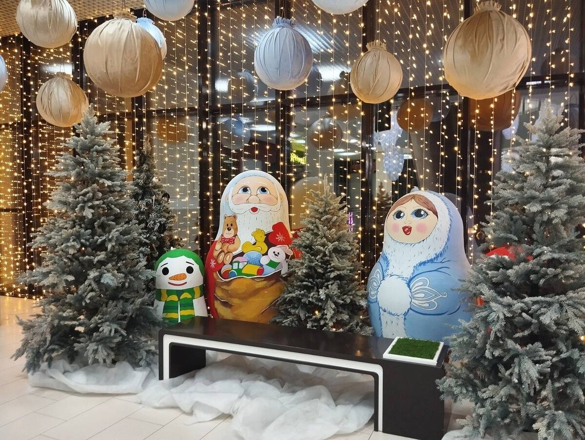 В «Победа Плаза» за Новый год отвечает матрешкообразные Дед Мороз и Снегурочка