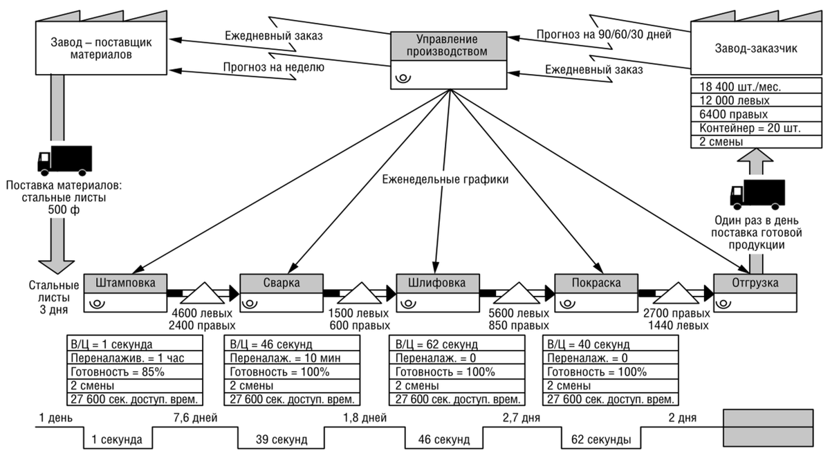 Поток создания ценности - это цепочка всех действий (как добавляющих ценность, так и нет), необходимых для преобразования сырья и информации в готовый продукт или услугу. Цель управления ПСЦ - обеспечить его максимальную скорость, непрерывность и эффективность, устраняя все виды потерь.