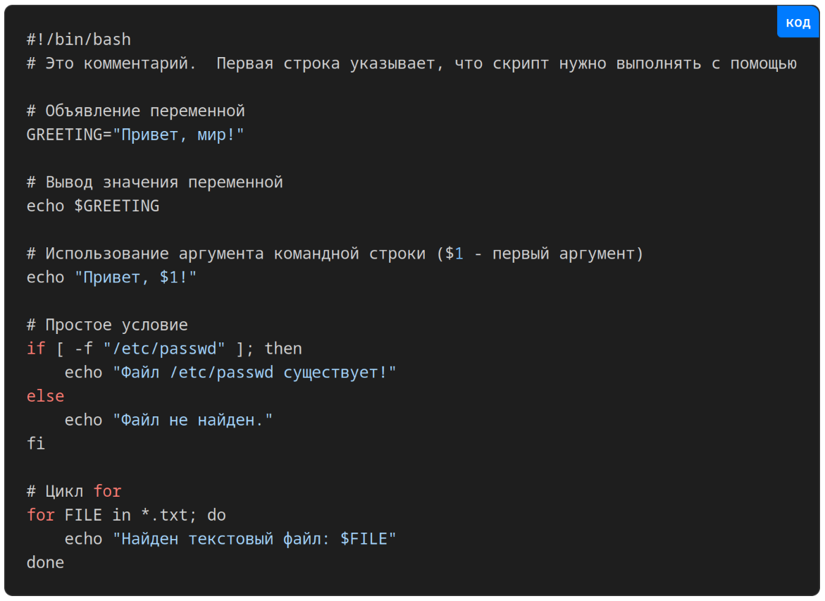- Язык сценариев (Scripting Language): Bash позволяет записывать последовательность команд в файл (скрипт), который затем можно выполнить как программу. Это превращает отдельные команды в мощный инструмент автоматизации.