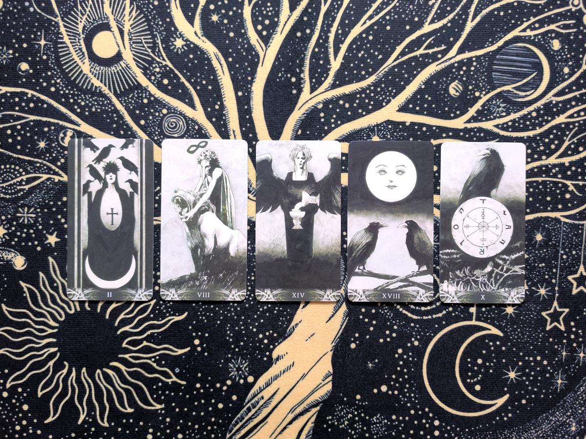 Предлагаю самый простой расклад, который поможет определить, имеются ли у спрашивающего магические способности. Для этого вам понадобятся только Старшие арканы в прямом положении! Хорошо перетасуйте полученную колоду и выложите в ряд 5 карт слева направо. Если в раскладе выпали ниже перечисленные арканы, то уже можно говорить о том, что человек обладает определенными задатками: Шут — начинающий практик, либо магический потенциал только начал себя проявлять; Маг — мощный энергетический потенциал, либо перед вами опытный практик; Жрица — прирожденная ведьма, обладание тяжелой энергетикой; Императрица — магические способности, переданные по роду; Жрец — предрасположенность к ритуальной магии; Влюбленные — двуручие, либо работа с несколькими эгрегорами/Силами; Колесница — стремительное магическое развитие, «расцвет» личной силы; Сила — дар в чем-либо (анализируете карты, лежащие рядом); Смерть — предрасположенность к работе с Миром Мертвых; Дьявол — предрасположенность к работе с Темным Эг
