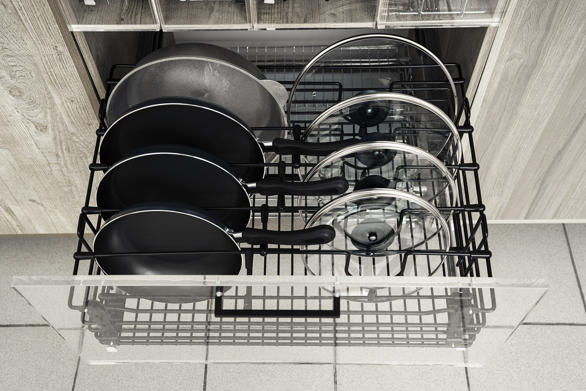 Сегодня поговорим о том, как и чем укомплектовать кухню так, чтобы готовить на ней было удобно и быстро. Да, удачно спланированная кухня здорово экономит и время, и силы хозяйки. Из чего складывается комфорт? Поделимся секретами. 1 Посудосушители в нижней базе Просто выдвигаете ящик и убираете туда всю посуду. Больше не нужно будет тянуться наверх, чтобы убрать тарелки-чашки. Если разместить посудосушитель рядом с посудомойкой, перекладывать чистую посуду будет еще быстрее и проще. Фото - SIGE 2 Поворотная полка Может разместиться как в холодильнике, так и в ящике. Работает очень просто – взяли за край, повернули полочку и легко добрались предметов, которые размещаются во втором ряду. Не нужно ничего двигать, доставать и переставлять. Быстро и удобно! Фото - Hettich Фото - Hettich 3 Выдвижной ящик для сковородок и крышек Суперудобное приспособление для хранения крупногабаритной утвари, которую обычно сложно где-то разместить с удобством. 4 Выдвижные сетчатые корзины под мойку Помогут