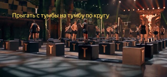 И понеслось! Надо много и долго прыгать с тумбы на тумбу. Если не успел пока гонг звенит, то на тебя летит уже следующий участник. Треш сплошной! Для девушек с короткими ногами невыносимое задание. Прыгнуть надо на 1 метр 80 см. Не совсем честно.