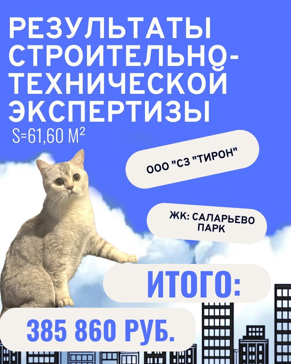 Итоги строительно-технической экспертизы ➕ ➿➿➿➿➿➿➿➿ ➡️ЖК: САЛАРЬЕВО ПАРК ➡️ЗАСТРОЙЩИК: ООО "СЗ "ТИРОН" ➡️Площадь: 61,60 м² 💸Стоимость устранения строительных недостатков- 385 860 рублей. ❤️При заключении договора на взыскание компенсации с застройщика за некачественную отделку мы оплатим за Вас строительно-техническую экспертизу! Юстивия – мы на вашей стороне в борьбе за справедливость! ➿➿➿➿➿➿➿➿ 📞+7 (936) 333-33-48 ✅@Yustivia 🌐yustivia.ru