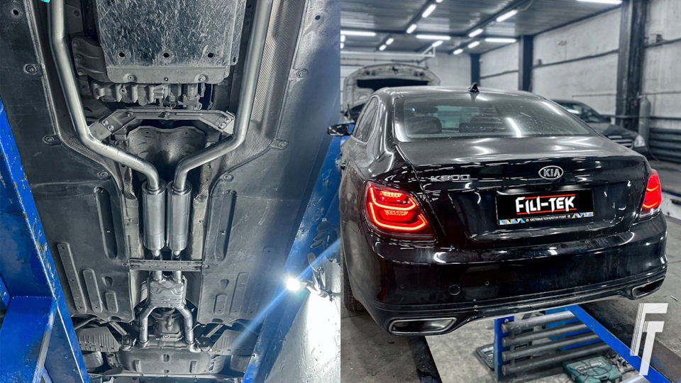На этот Kia K900 владелец приехал с четким запросом. Он хотел получить новую выхлопную систему, которая даст глубокий и приятный звук, но при этом позволит переключать режимы и ехать тихо, когда это нужно. Мы предложили комплексное решение и сделали всю систему с нуля.